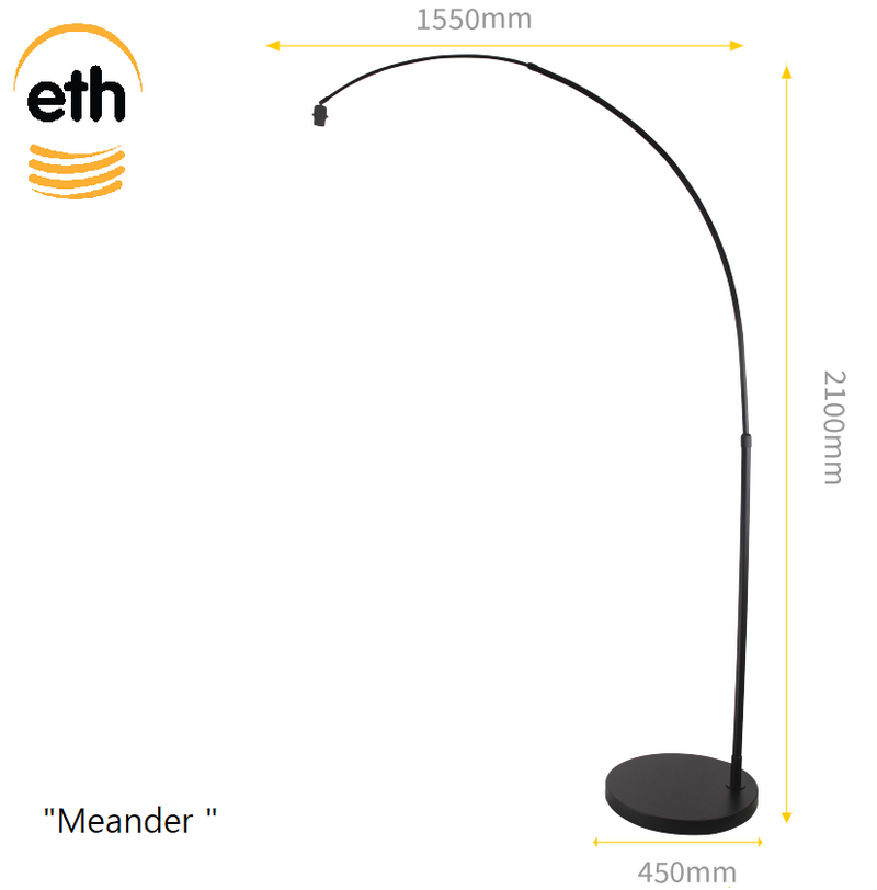 Met de ETH Meander Booglamp (kleur: Zwart) haal je een elegante blikvanger in huis. Dankzij de grote, boogvormige boog en de zachte zandkleur brengt hij warmte én stijl in je woonruimte. Het ontwerp is verfijnd en tegelijk opvallend — geschikt voor wie een statement zoekt zonder te overheersen.