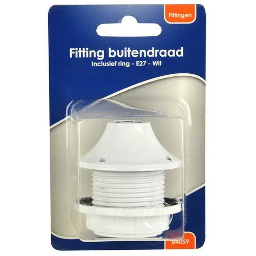 Fitting E27 buitendraad Wit Inclusief ring Blister