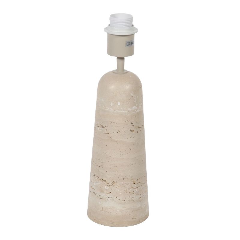 De Travino tafellamp is een stijlvolle en compacte lampenvoet, volledig vervaardigd uit travertin – een kalksteensoort bekend om zijn warme tinten en natuurlijke nerfstructuur. Elk exemplaar is uniek, dankzij de authentieke variaties in het natuursteen.