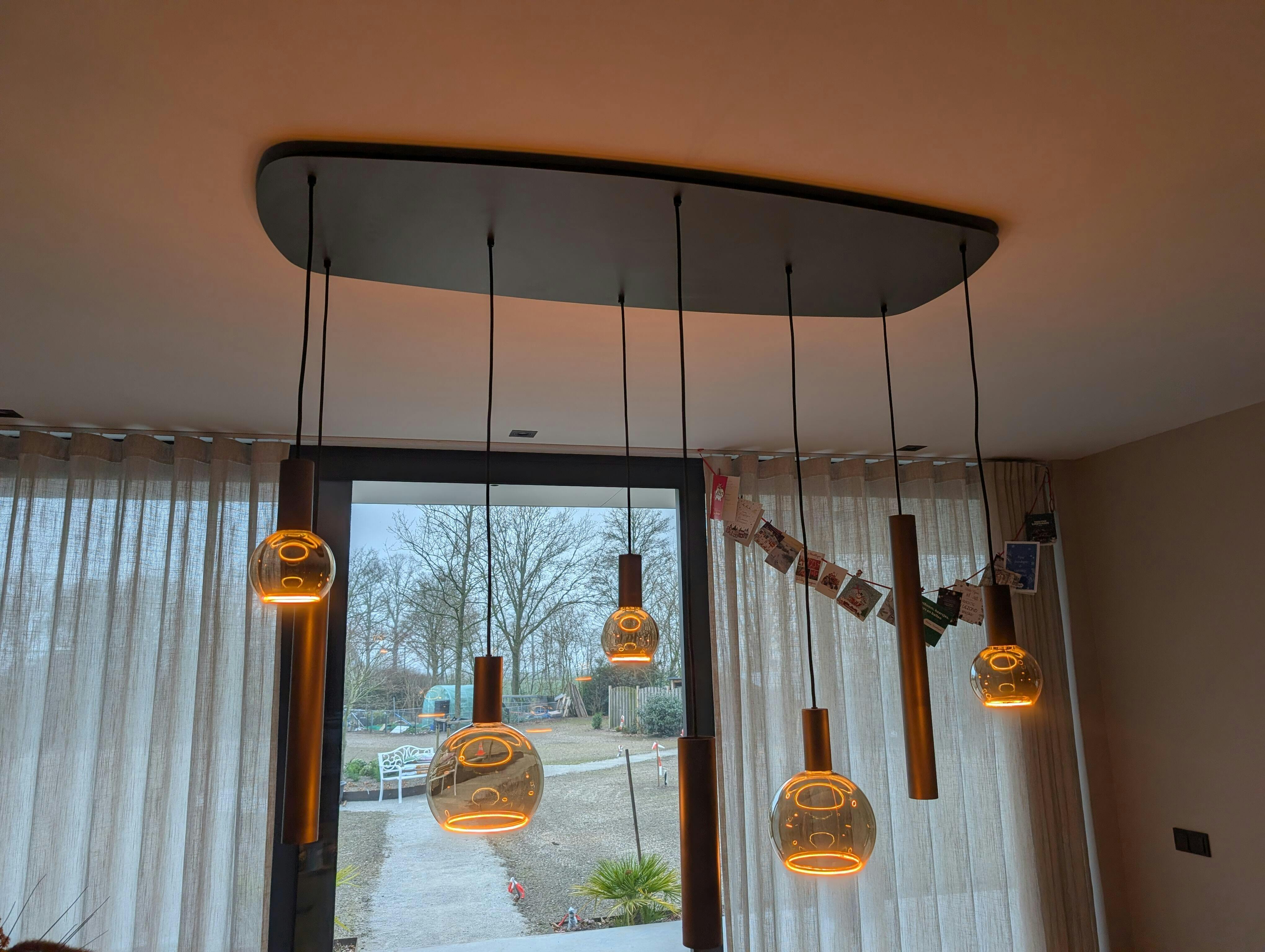- Sfeervolle verlichting boven een eettafel